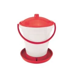 Der Eimer aus lebensmittelechtem hochwertigem Kunststoff wird mit einem Tragegriff zum leichten Transport geliefert. Durch die automatische Wasserzufuhr können die Hühner zu jeder Zeit trinken.